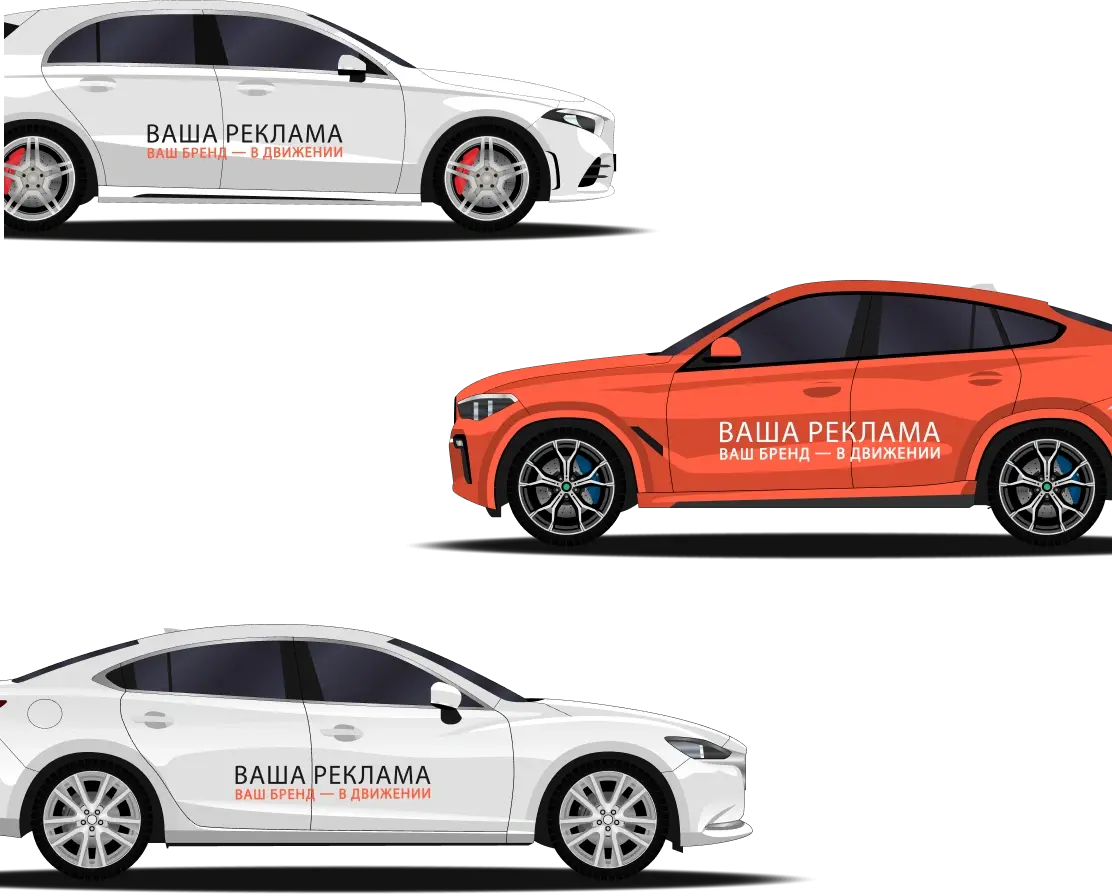 Мы работаем с разными типами автомобилей — от легковых до коммерческого транспорта. Подбираем формат размещения под цели бизнеса, город и маршрут движения.